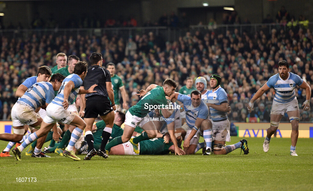 10 November 2018; Luke McGrath of Ireland on his way to scoring his side's third try during the Guinness Series International match between Ireland and Argentina at the Aviva Stadium in Dublin. Photo by Matt Browne/Sportsfile