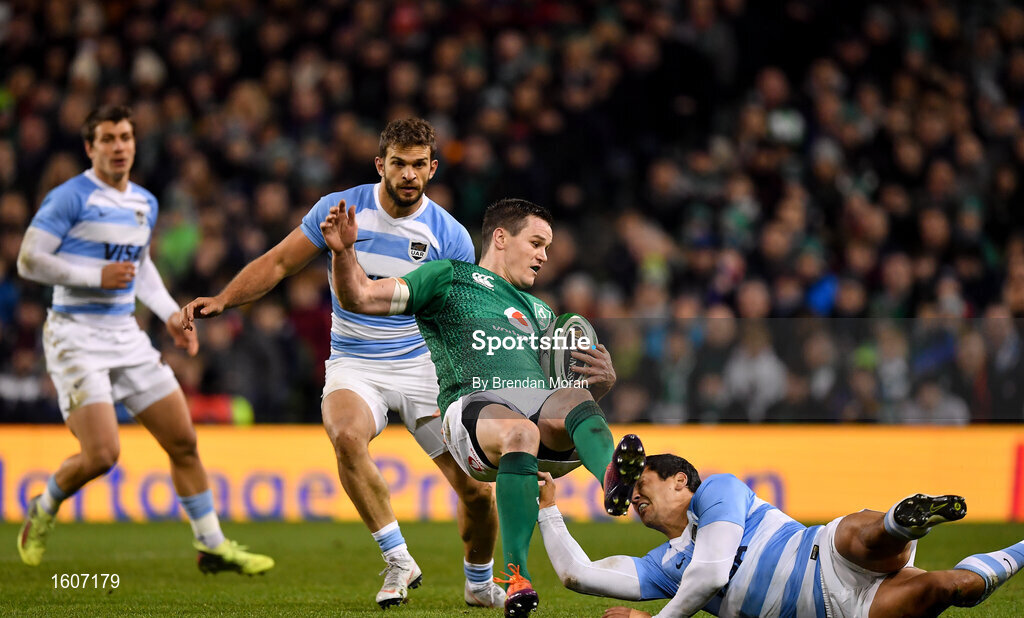 10 November 2018; Jonathan Sexton of Ireland is tackled by Matias Moroni of Argentina during the Guinness Series International match between Ireland and Argentina at the Aviva Stadium in Dublin. Photo by Brendan Moran/Sportsfile