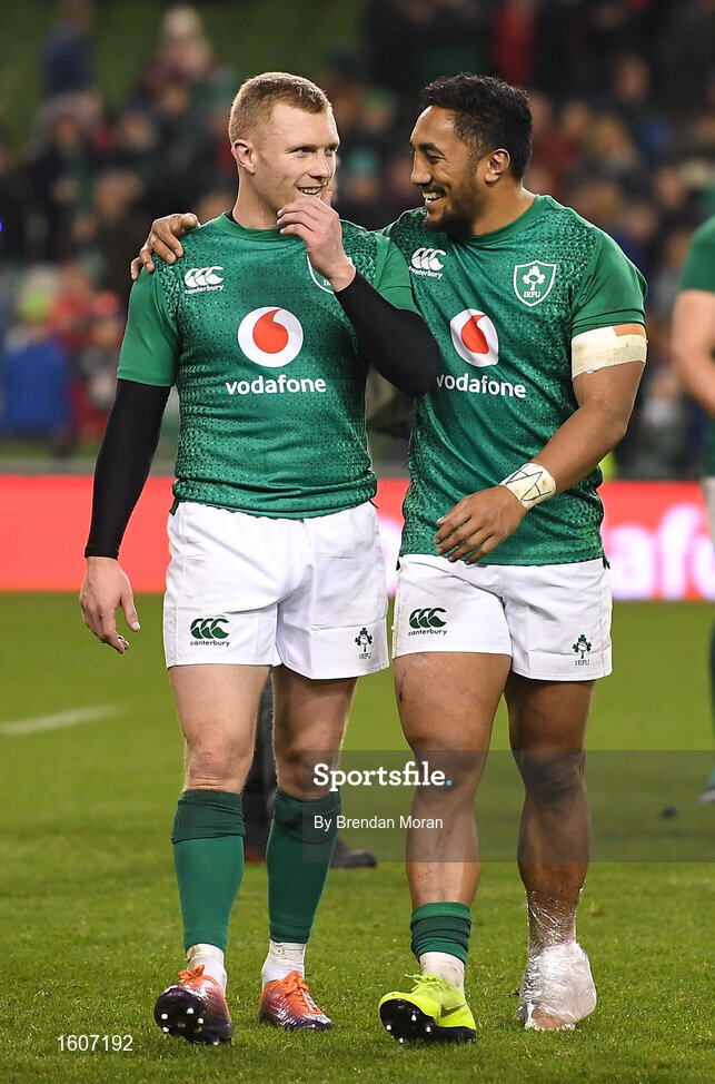 10 November 2018; Keith Earls, left, and Bundee Aki of Ireland following the Guinness Series International match between Ireland and Argentina at the Aviva Stadium in Dublin. Photo by Brendan Moran/Sportsfile