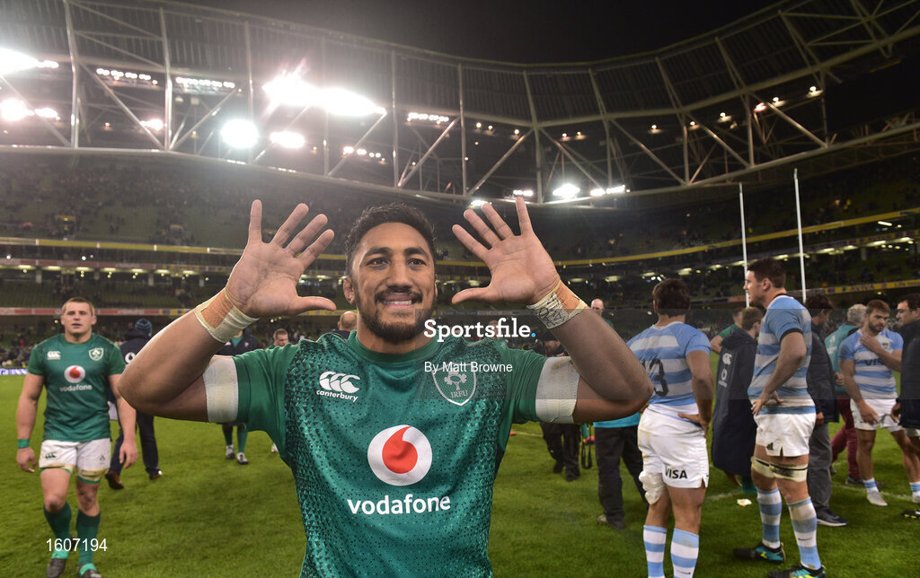 10 November 2018; Bundee Aki of Ireland following the Guinness Series International match between Ireland and Argentina at the Aviva Stadium in Dublin. Photo by Matt Browne/Sportsfile