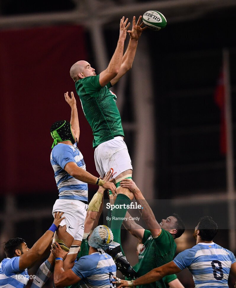 10 November 2018; Devin Toner of Ireland wins possession in the lineout ahead of Matias Alemanno of Argentina during the Guinness Series International match between Ireland and Argentina at the Aviva Stadium in Dublin. Photo by Ramsey Cardy/Sportsfile