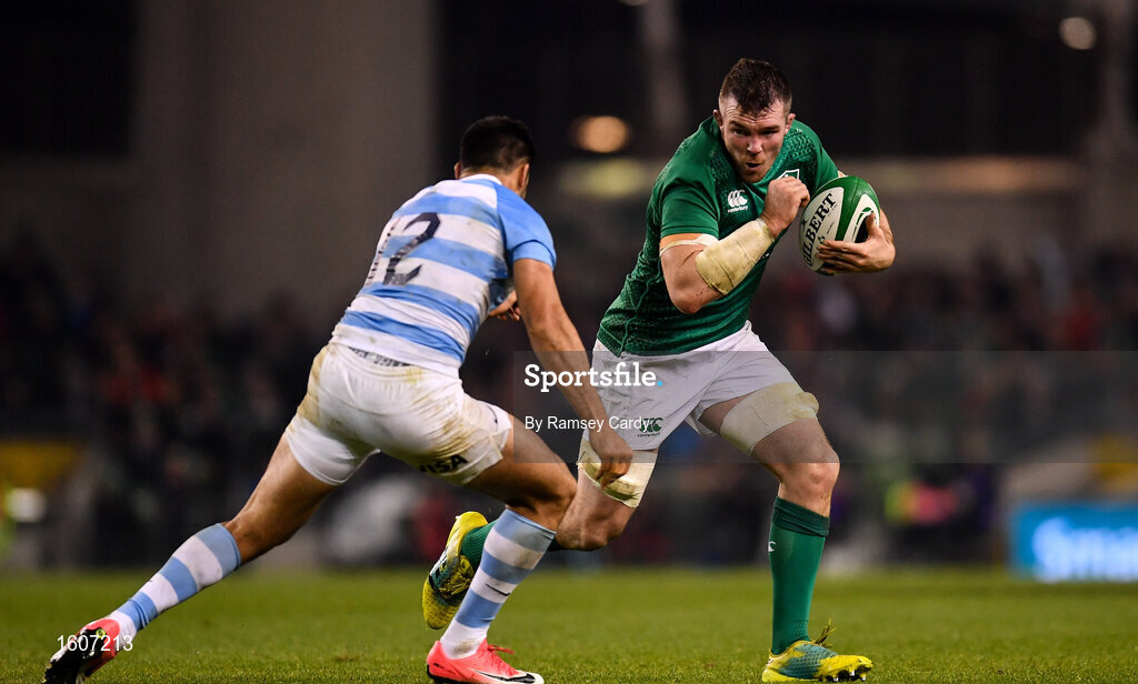 10 November 2018; Peter O’Mahony of Ireland in action against Jeronimo de la Fuente of Argentina during the Guinness Series International match between Ireland and Argentina at the Aviva Stadium in Dublin. Photo by Ramsey Cardy/Sportsfile