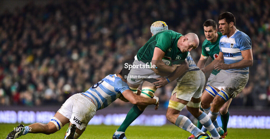 10 November 2018; Devin Toner of Ireland is tackled by Javier Ortega Desio and Tomas Lavanini of Argentina during the Guinness Series International match between Ireland and Argentina at the Aviva Stadium in Dublin. Photo by Matt Browne/Sportsfile