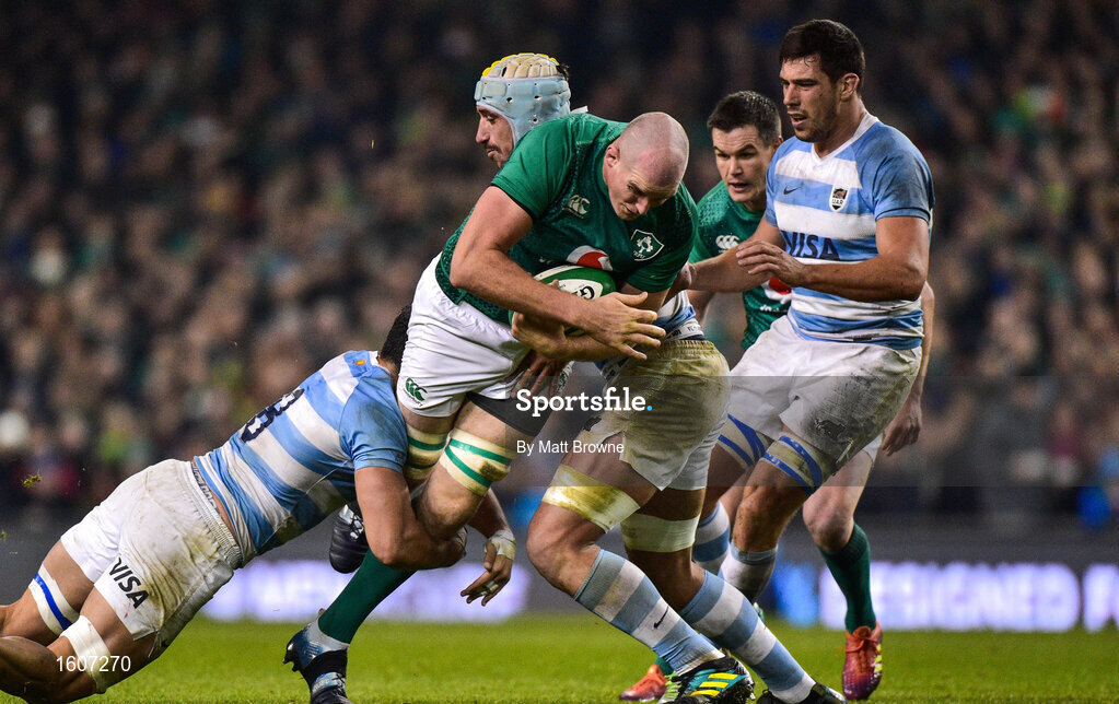 10 November 2018; Devin Toner of Ireland is tackled by Javier Ortega Desio and Tomas Lavanini of Argentina during the Guinness Series International match between Ireland and Argentina at the Aviva Stadium in Dublin. Photo by Matt Browne/Sportsfile