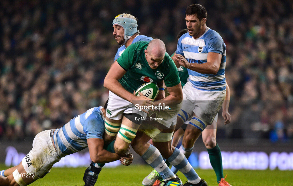 10 November 2018; Devin Toner of Ireland is tackled by Javier Ortega Desio and Tomas Lavanini of Argentina during the Guinness Series International match between Ireland and Argentina at the Aviva Stadium in Dublin. Photo by Matt Browne/Sportsfile