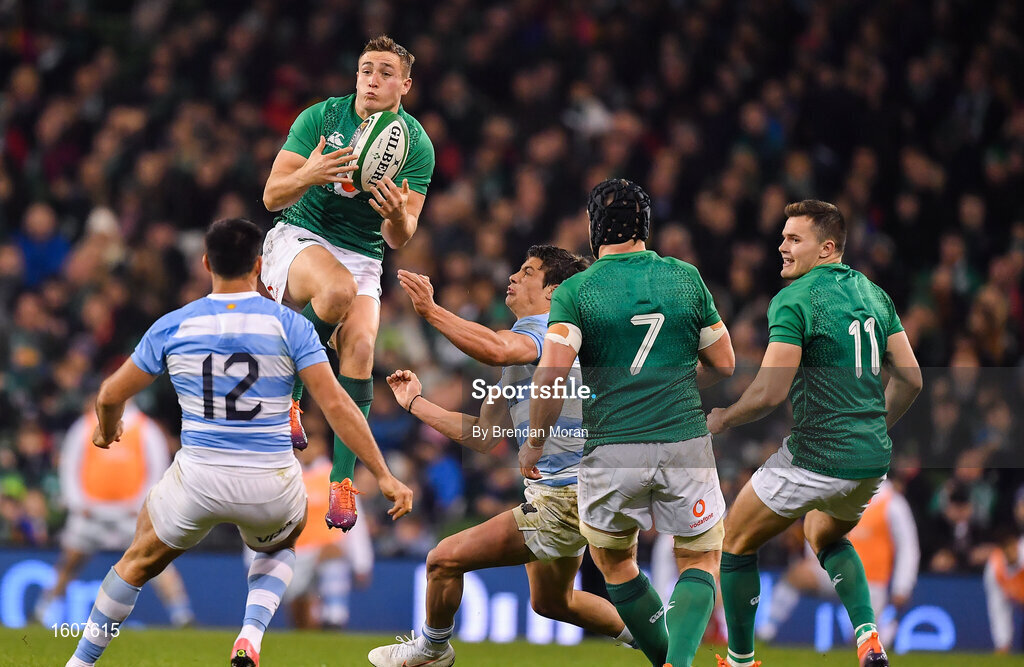 10 November 2018; Jordan Larmour of Ireland fields a high ball during the Guinness Series International match between Ireland and Argentina at the Aviva Stadium in Dublin. Photo by Brendan Moran/Sportsfile