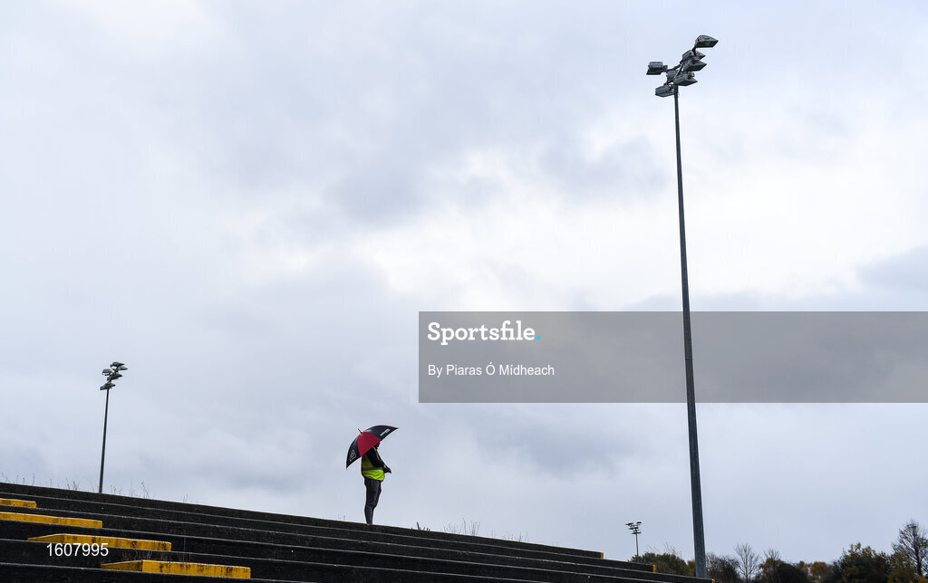 11 November 2018; Steward Aaron O'Donovan, from Kildimo-Pallaskenry, Co Limerick, watches the Dr Crokes squad warm-up on the back pitch before the AIB Munster GAA Football Senior Club Championship semi-final match between Dr Crokes and St Finbarr's at Dr Crokes GAA, in Killarney, Co. Kerry. Photo by Piaras Ó Mídheach/Sportsfile
