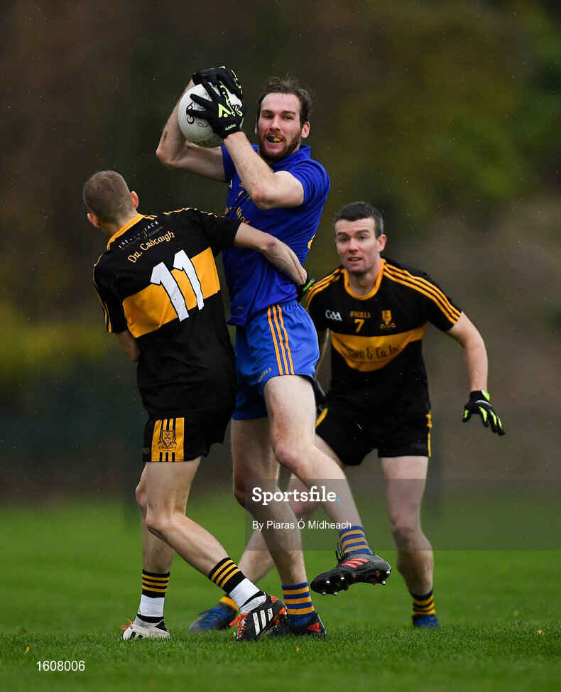 11 November 2018; Eoin Comyns St Finbarr's in action against Gavin O'Shea, left, and Shane Doolan of Dr Crokes during the AIB Munster GAA Football Senior Club Championship semi-final match between Dr Crokes and St Finbarr's at Dr Crokes GAA, in Killarney, Co. Kerry. Photo by Piaras Ó Mídheach/Sportsfile
