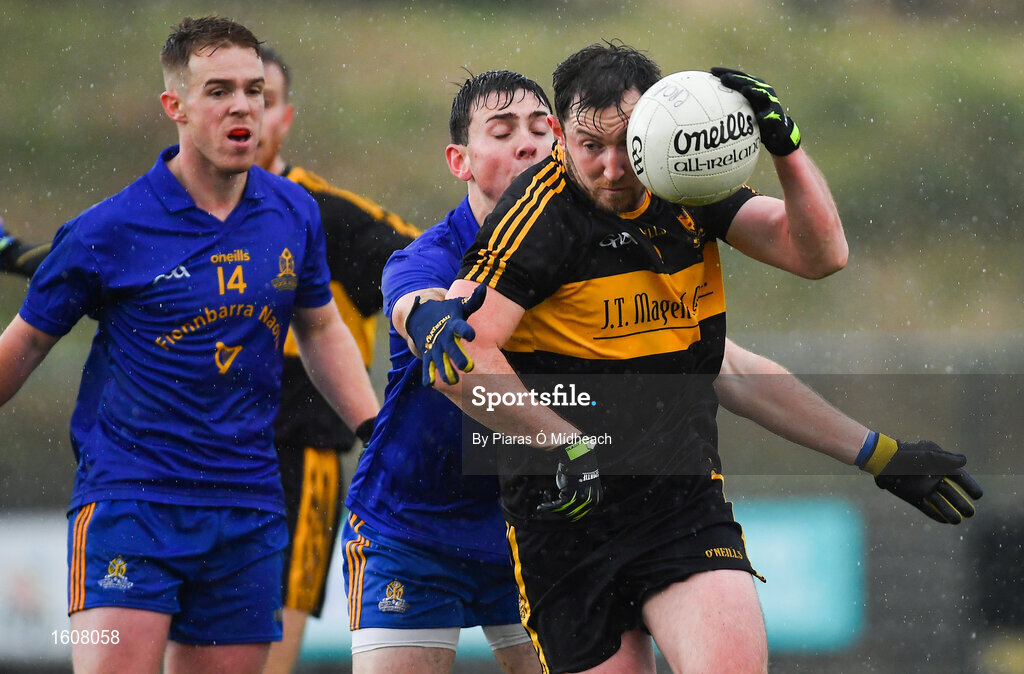 11 November 2018; Daithí Casey of Dr Crokes in action against Colm Keane and Eoin McGreevey, behind, of St Finbarr's during the AIB Munster GAA Football Senior Club Championship semi-final match between Dr Crokes and St Finbarr's at Dr Crokes GAA, in Killarney, Co. Kerry. Photo by Piaras Ó Mídheach/Sportsfile