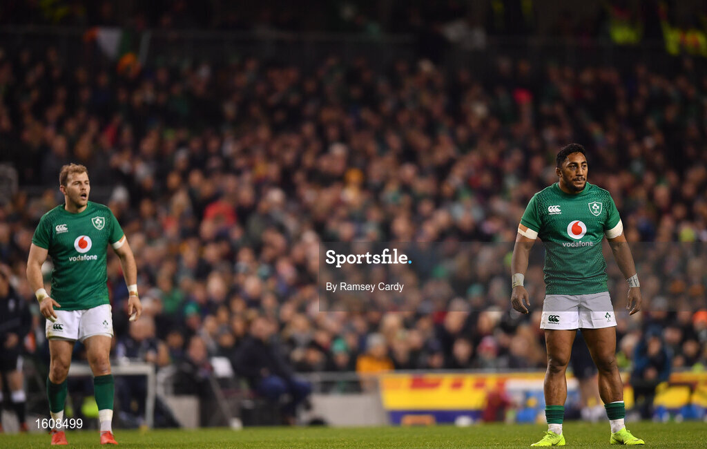 10 November 2018; Will Addison, left, and Bundee Aki of Ireland during the Guinness Series International match between Ireland and Argentina at the Aviva Stadium in Dublin. Photo by Ramsey Cardy/Sportsfile