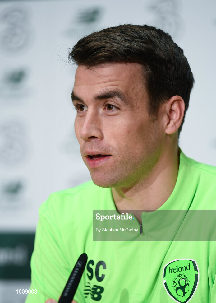 12 November 2018; Seamus Coleman during a Republic of Ireland press conference at the FAI National Training Centre in Abbotstown, Dublin. Photo by Stephen McCarthy/Sportsfile