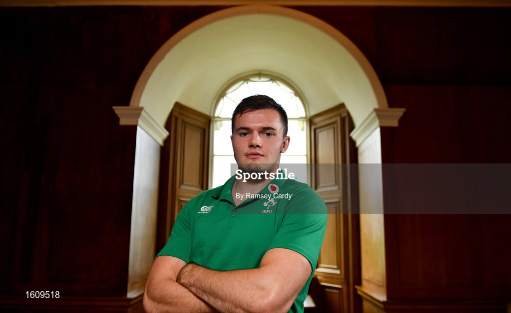 13 November 2018; Jacob Stockdale poses for a portrait following an Ireland rugby press conference at Carton House in Maynooth, Co. Kildare. Photo by Ramsey Cardy/Sportsfile
