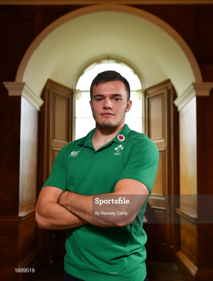 13 November 2018; Jacob Stockdale poses for a portrait following an Ireland rugby press conference at Carton House in Maynooth, Co. Kildare. Photo by Ramsey Cardy/Sportsfile