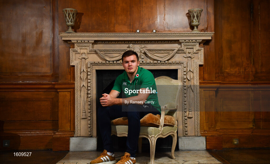 13 November 2018; Jacob Stockdale poses for a portrait following an Ireland rugby press conference at Carton House in Maynooth, Co. Kildare. Photo by Ramsey Cardy/Sportsfile