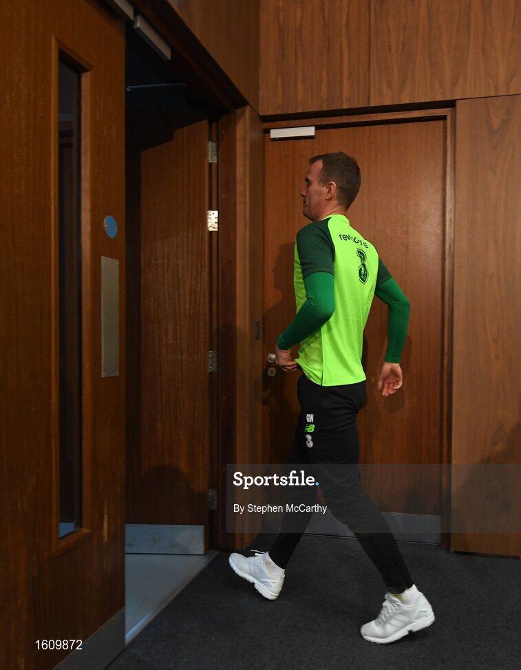 14 November 2018; Glenn Whelan leaves a Republic of Ireland press conference at the FAI National Training Centre in Abbotstown, Dublin. Photo by Stephen McCarthy/Sportsfile