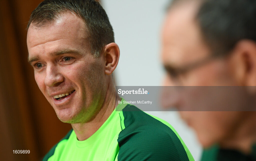 14 November 2018; Glenn Whelan and Republic of Ireland manager Martin O'Neill during a press conference at the FAI National Training Centre in Abbotstown, Dublin. Photo by Stephen McCarthy/Sportsfile