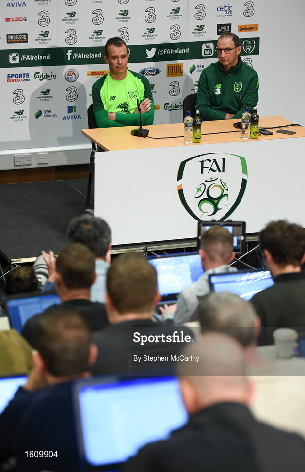 14 November 2018; Glenn Whelan and Republic of Ireland manager Martin O'Neill during a press conference at the FAI National Training Centre in Abbotstown, Dublin. Photo by Stephen McCarthy/Sportsfile
