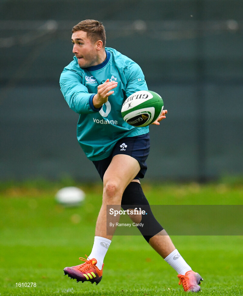 15 November 2018; Jordan Larmour during Ireland Rugby squad training at Carton House in Maynooth, Co. Kildare. Photo by Ramsey Cardy/Sportsfile