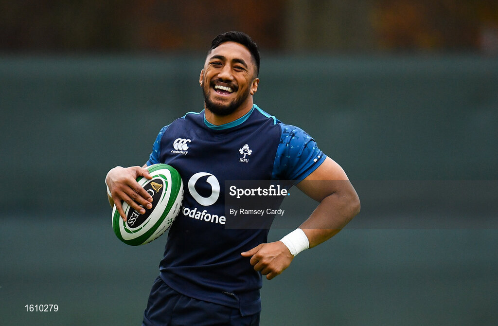 15 November 2018; Bundee Aki during Ireland Rugby squad training at Carton House in Maynooth, Co. Kildare. Photo by Ramsey Cardy/Sportsfile