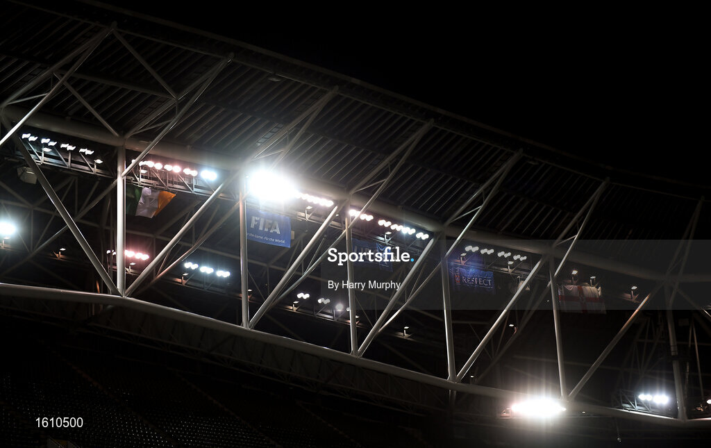 15 November 2018; A general view of flags prior to the International Friendly match between Republic of Ireland and Northern Ireland at the Aviva Stadium in Dublin. Photo by Harry Murphy/Sportsfile