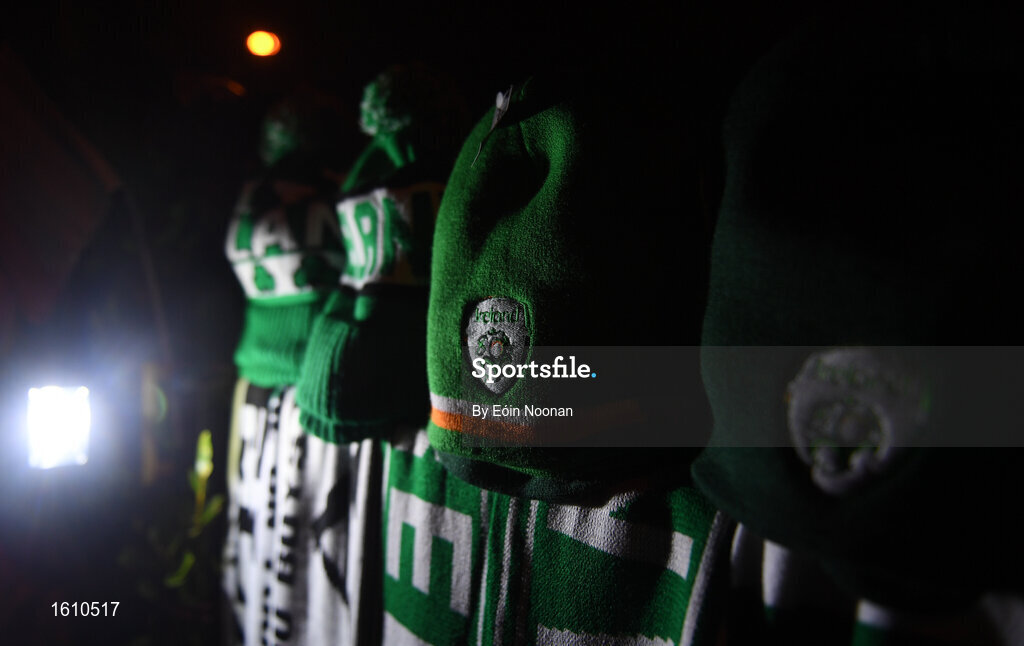 15 November 2018; A detailed view of hats and scarfs on sale outside the ground ahead of the International Friendly match between Republic of Ireland and Northern Ireland at the Aviva Stadium in Dublin. Photo by Eóin Noonan/Sportsfile