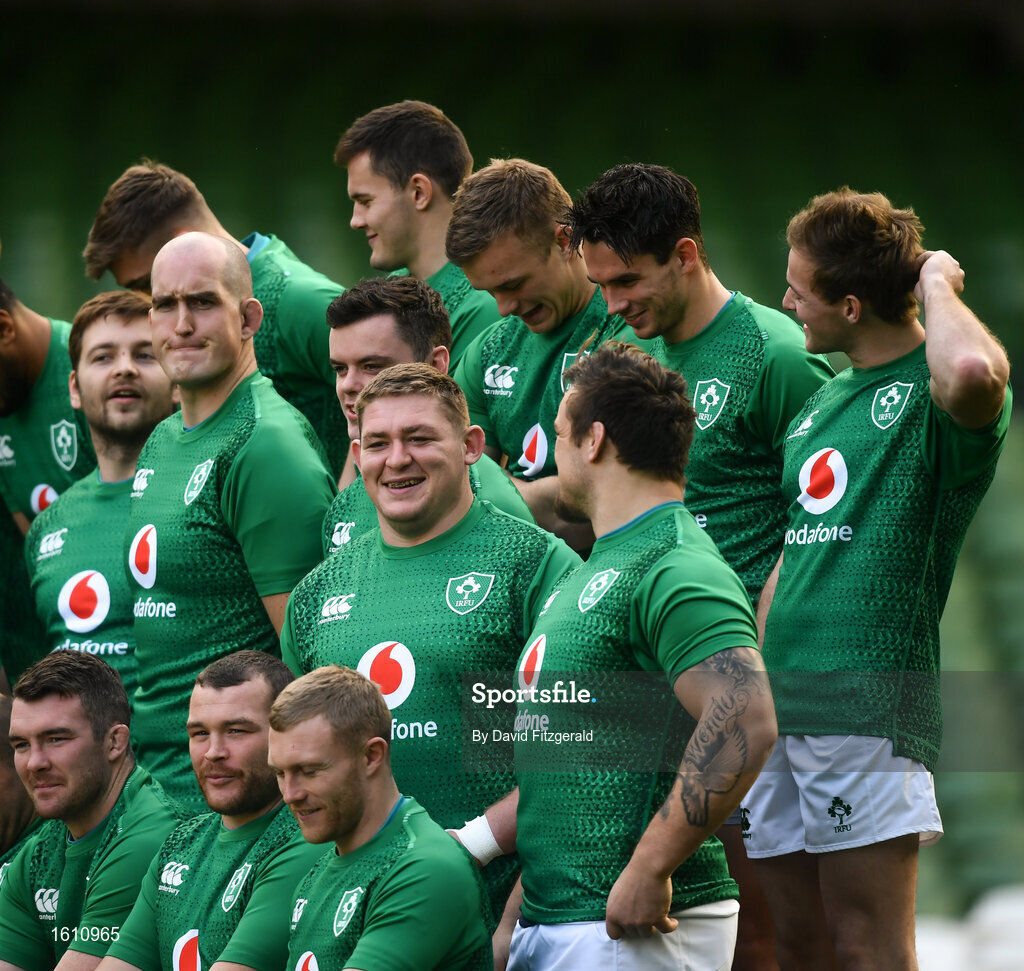16 November 2018; The players line up for their squad photo prior to the Ireland Rugby Captain's Run at the Aviva Stadium in Dublin. Photo by David Fitzgerald/Sportsfile