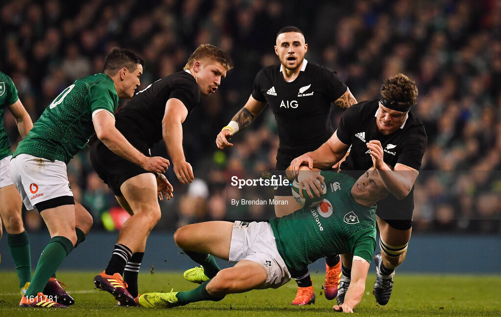 17 November 2018; Garry Ringrose of Ireland is tackled by Scott Barrett of New Zealand during the Guinness Series International match between Ireland and New Zealand at the Aviva Stadium in Dublin. Photo by Brendan Moran/Sportsfile