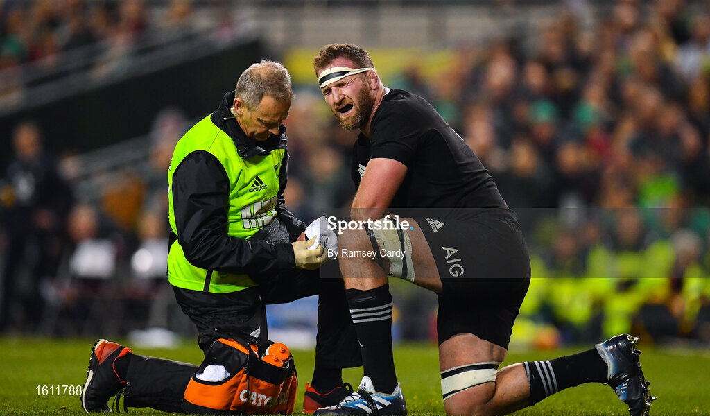 17 November 2018; Kieran Read of New Zealand is treated for an injury during the Guinness Series International match between Ireland and New Zealand at the Aviva Stadium in Dublin. Photo by Ramsey Cardy/Sportsfile