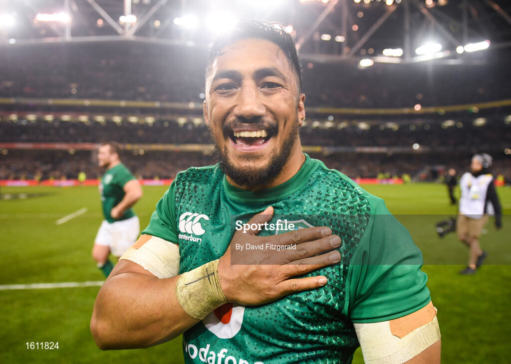 17 November 2018; Bundee Aki of Ireland celebrates following the Guinness Series International match between Ireland and New Zealand at the Aviva Stadium in Dublin. Photo by David Fitzgerald/Sportsfile