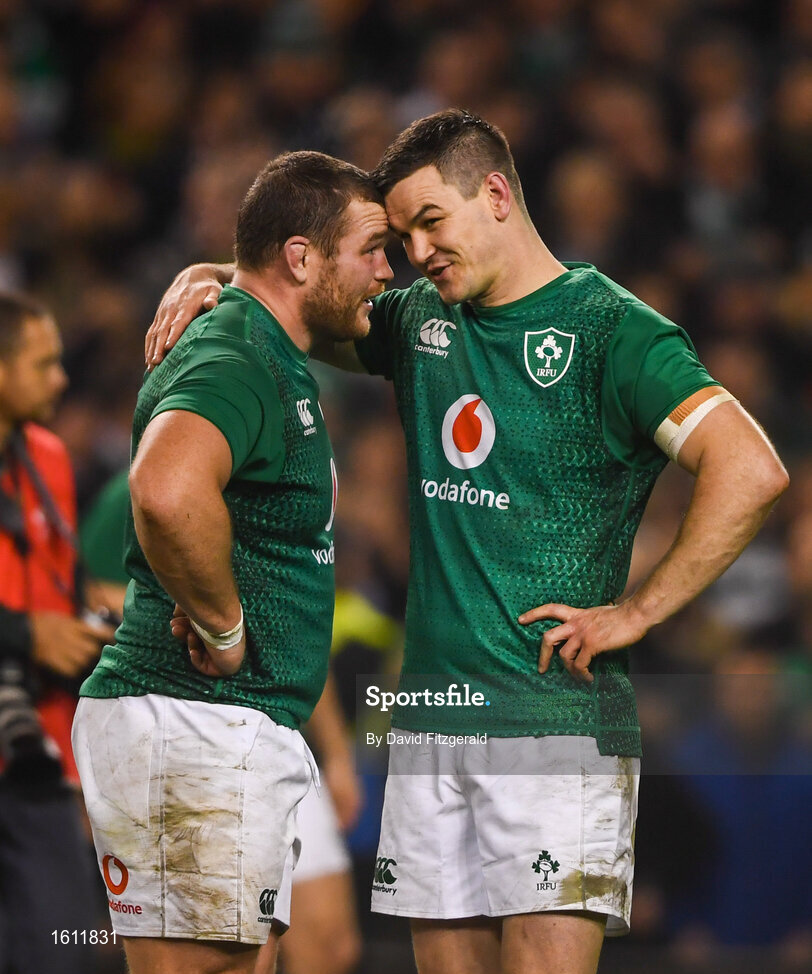 17 November 2018; Jonathan Sexton, right, and Jack McGrath of Ireland following the Guinness Series International match between Ireland and New Zealand at the Aviva Stadium in Dublin. Photo by David Fitzgerald/Sportsfile