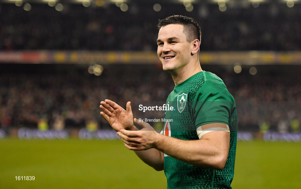 17 November 2018; Jonathan Sexton of Ireland celebrates following the Guinness Series International match between Ireland and New Zealand at the Aviva Stadium in Dublin. Photo by Brendan Moran/Sportsfile