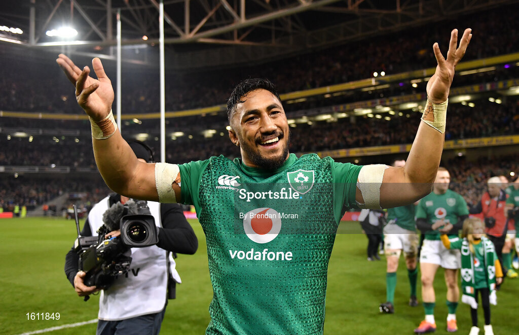 17 November 2018; Bundee Aki of Ireland celebrates following the Guinness Series International match between Ireland and New Zealand at the Aviva Stadium in Dublin. Photo by Brendan Moran/Sportsfile