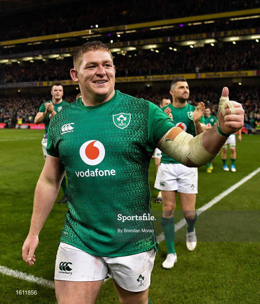 17 November 2018; Tadhg Furlong of Ireland celebrates following the Guinness Series International match between Ireland and New Zealand at the Aviva Stadium in Dublin. Photo by Brendan Moran/Sportsfile