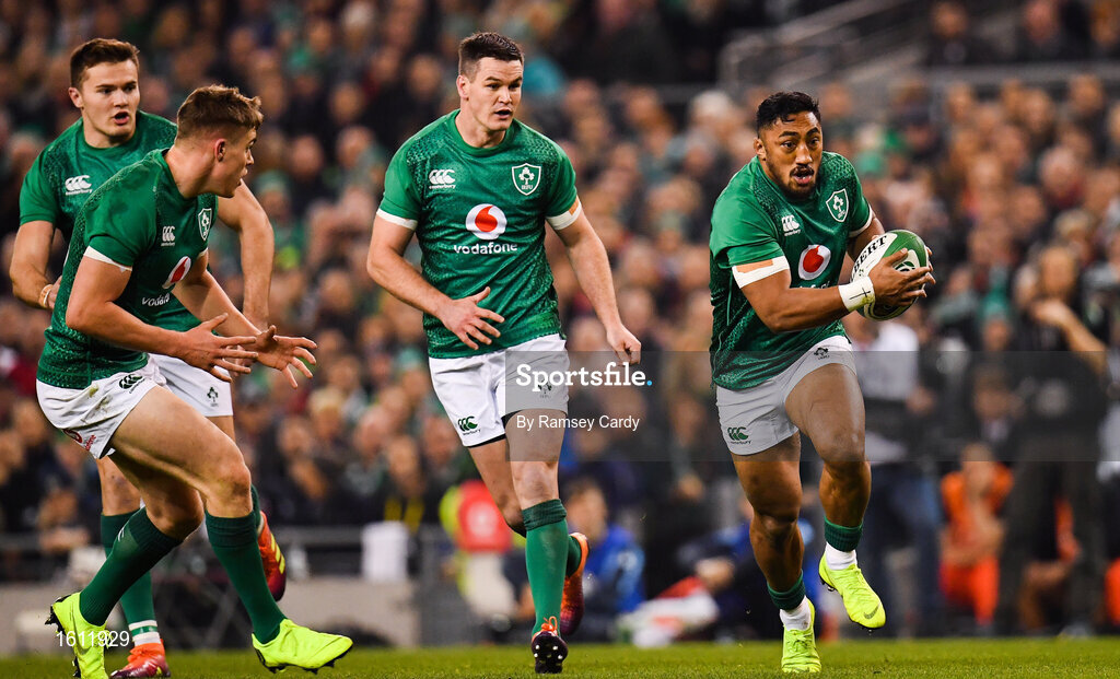 17 November 2018; Bundee Aki of Ireland during the Guinness Series International match between Ireland and New Zealand at the Aviva Stadium in Dublin. Photo by Ramsey Cardy/Sportsfile