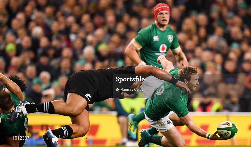 17 November 2018; Kieran Marmion of Ireland in action against Nepo Laulala of New Zealand during the Guinness Series International match between Ireland and New Zealand at the Aviva Stadium in Dublin. Photo by Ramsey Cardy/Sportsfile