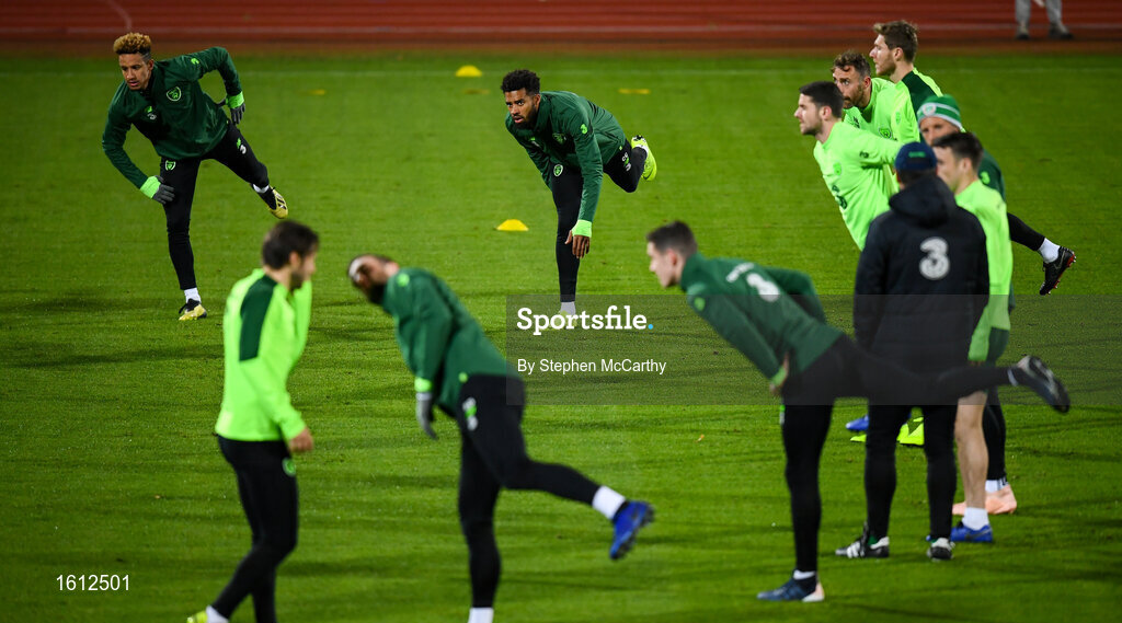 18 November 2018; Cyrus Christie and Callum Robinson, top left, during a Republic of Ireland training session at Ceres Park in Aarhus, Denmark. Photo by Stephen McCarthy/Sportsfile