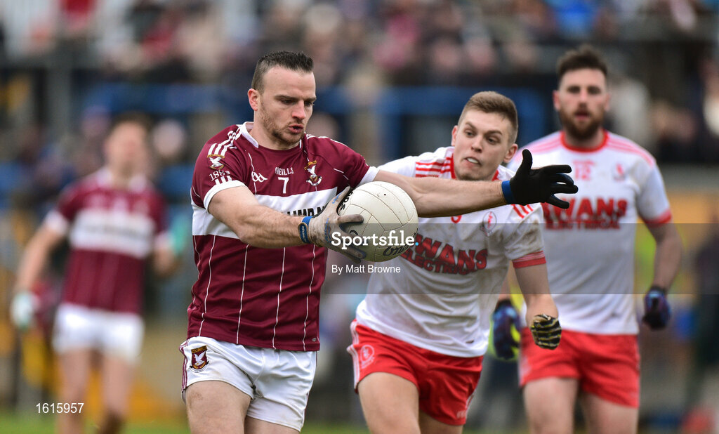25 November 2018; Donal McElligott of Mullinalaghta St Columba's in action against Kalvin Chatten of Eire Og during the AIB Leinster GAA Football Senior Club Championship semi-final match between Mullinalaghta St. Columba's and Eire Og at Glennon Brothers Pearse Park in Longford. Photo by Matt Browne/Sportsfile