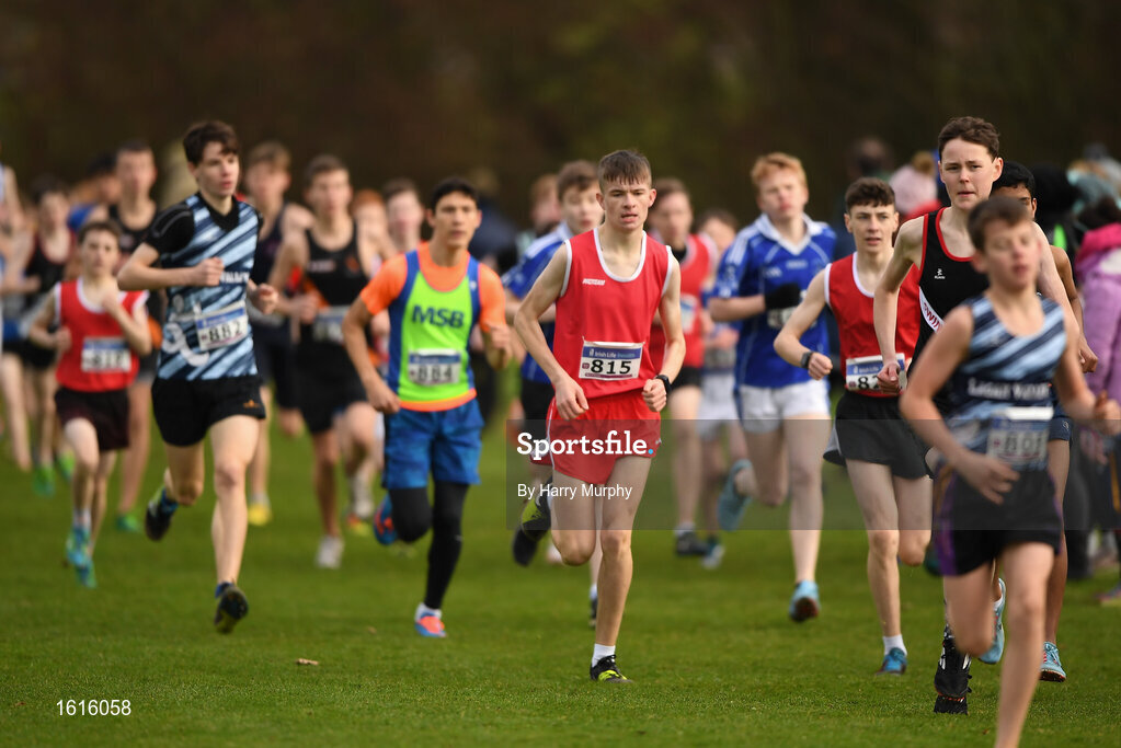 25 November 2018; Ben O'Connor of Leevale A.C. Co. Cork, in red, competing in the Boys U16 4,000m during the Irish Life Health National Senior & Junior Cross Country Championships at National Sports Campus in Abbottstown, Dublin. Photo by Harry Murphy/Sportsfile