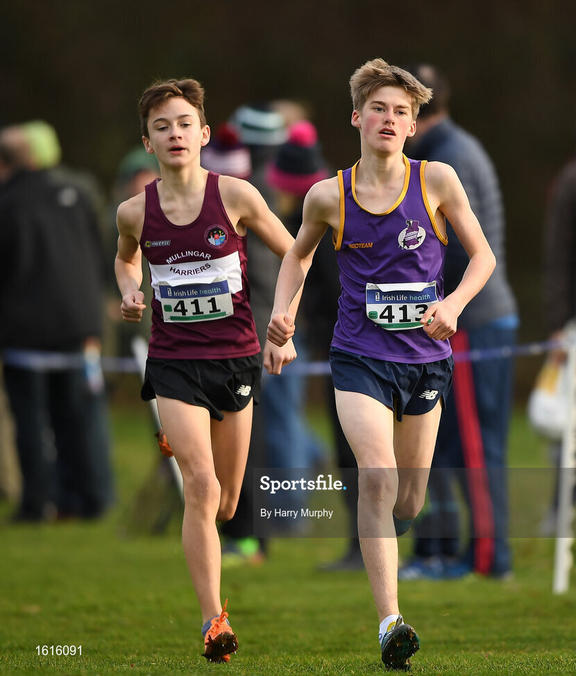 25 November 2018; Diarmuid Fagan of Mullingar Harriers A.C. Co. Westmeath, left, and Myles Hewlett of United Striders A.C. Co. Wexford, competing in the Boys U14 2,000m during the Irish Life Health National Senior & Junior Cross Country Championships at National Sports Campus in Abbottstown, Dublin. Photo by Harry Murphy/Sportsfile