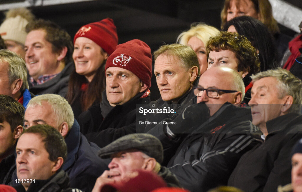 30 November 2018; Munster Rugby CEO Garrett Fitzgerald, left, and Ireland head coach Joe Schmidt and during the Guinness PRO14 Round 10 match between Munster and Edinbugh at Irish Independent Park in Cork. Photo by Diarmuid Greene/Sportsfile