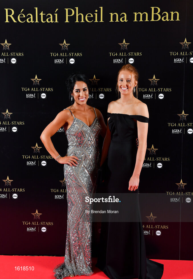 1 December 2018; Aislinn Desmond of Kerry, left, and Aishling Moloney of Tipperary in attendance at the TG4 Ladies Football All Stars Awards 2018, in association with Lidl, at the Citywest Hotel in Dublin. Photo by Brendan Moran/Sportsfile