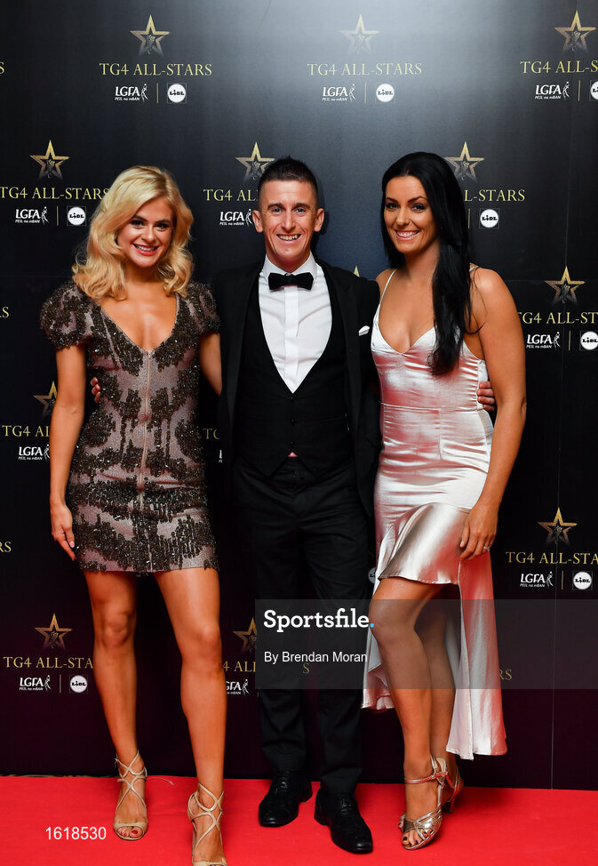 1 December 2018; Rob Heffernan with his wife Marian, right, and his Dancing With The Stars dance partner Emily Barker in attendance at the TG4 Ladies Football All Stars Awards 2018, in association with Lidl, at the Citywest Hotel in Dublin. Photo by Brendan Moran/Sportsfile