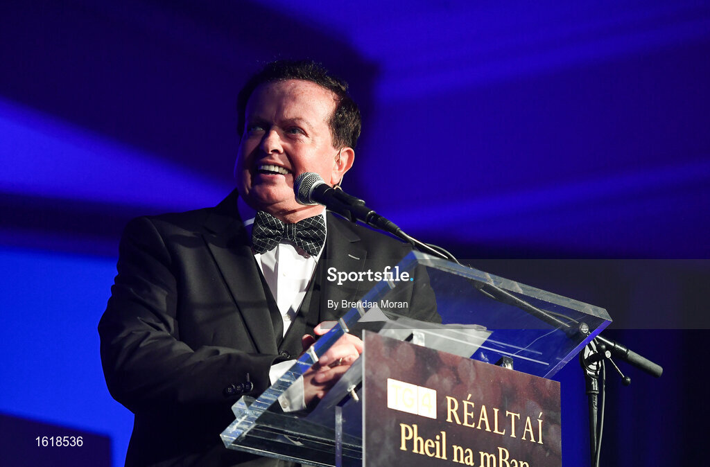 1 December 2018; MC Marty Morrissey speaking during the TG4 Ladies Football All Stars Awards 2018, in association with Lidl, at the Citywest Hotel in Dublin. Photo by Brendan Moran/Sportsfile