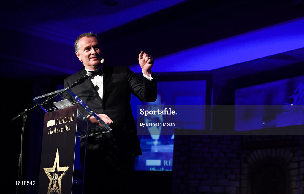 1 December 2018; MC Daithí O Sé speaking during the TG4 Ladies Football All Stars Awards 2018, in association with Lidl, at the Citywest Hotel in Dublin. Photo by Brendan Moran/Sportsfile
