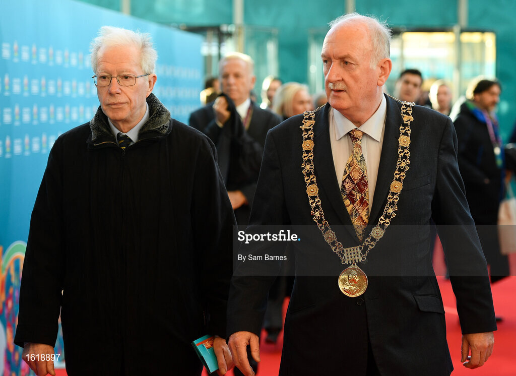 2 December 2018; Lord Mayor of Dublin Nial Ring arrives prior to the UEFA EURO2020 Qualifying Draw at the Convention Centre in Dublin. Photo by Sam Barnes/Sportsfile