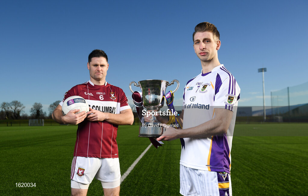 3 December 2018; Ross McGowan of Kilmacud Crokes, right, and Shane Mulligan of Mullinalaghta St Columba's during the AIB Leinster GAA Club Football Finals Launch at the GAA Games Development Centre in Abbotstown, Dublin. Photo by David Fitzgerald/Sportsfile
