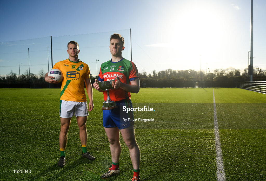 3 December 2018; Nigel Dunne of Shamrocks, right, and Peter Kelly of Two Mile House during the AIB Leinster GAA Club Football Finals Launch at the GAA Games Development Centre in Abbotstown, Dublin. Photo by David Fitzgerald/Sportsfile