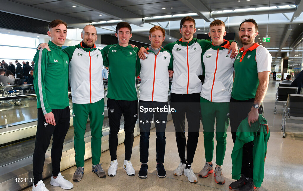 7 December 2018; Team Ireland athletes, from left, Brian Fay, Kevn Maunsell, Garry Campbell, Sean Tobin, Paul Robinson, Daire Finn and Feidhlim Kelly, pictured at Dublin Airport prior to departing for the European Cross Country in Beekse Bergen Safari Park in Tilburg, Netherlands. Photo by Sam Barnes/Sportsfile