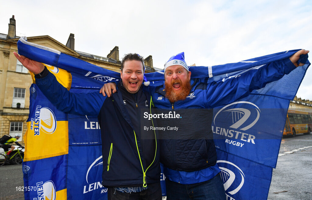 8 December 2018; Leinster supporters Eugene Canavan, left, and Gerry Rafferty prior to the European Rugby Champions Cup Pool 1 Round 3 match between Bath and Leinster at the Recreation Ground in Bath, England. Photo by Ramsey Cardy/Sportsfile