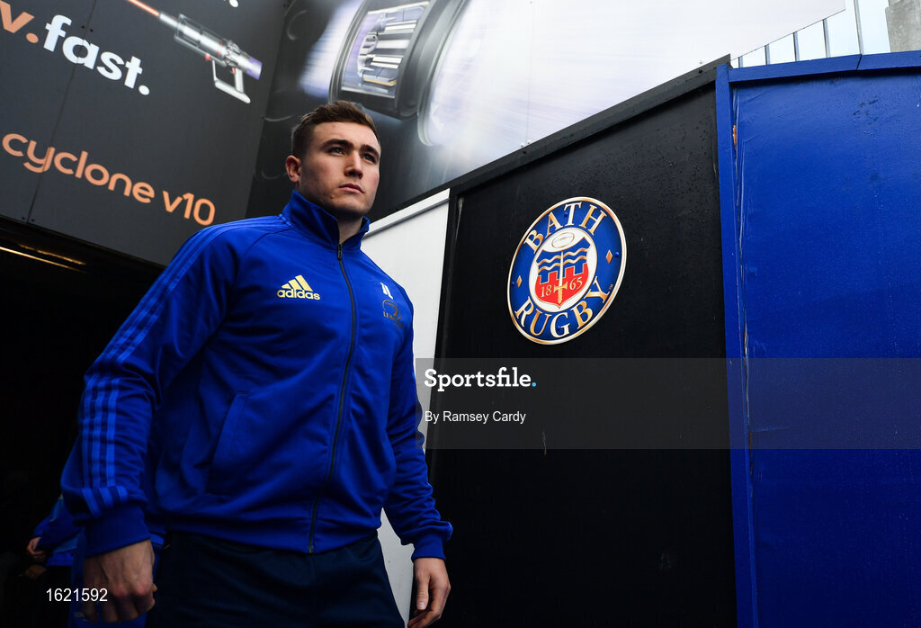 8 December 2018; Jordan Larmour of Leinster arrives prior to the European Rugby Champions Cup Pool 1 Round 3 match between Bath and Leinster at the Recreation Ground in Bath, England. Photo by Ramsey Cardy/Sportsfile